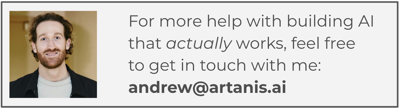 First, there has to be a working relationship - you have to talk to each other! It’s nothing flashy, but regular, open dialogue is more important than the flashy stuff (and lack of communication befalls many AI projects1). But more than this, you should want to talk to each other. A good outcome from an AI project reduces drudgery for the domain expert. Equally, the AI Engineer gets to learn something new about how the world works, which, at least for us at Artanis, is extremely satisfying.